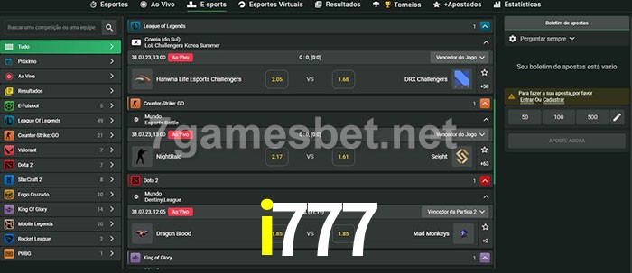 A aposta i777 oferece aos jogadores a experiência mais conveniente de apostas em eSports!